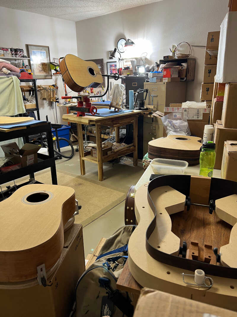 Mark bought the shop lock, stock, and barrel for $2500 and in the process, inherited an entire shop full of actual lutherie tools. After a couple years, he found himself not only doing adjustments and repairs, but he had also started building his own guitars and other stringed instruments.